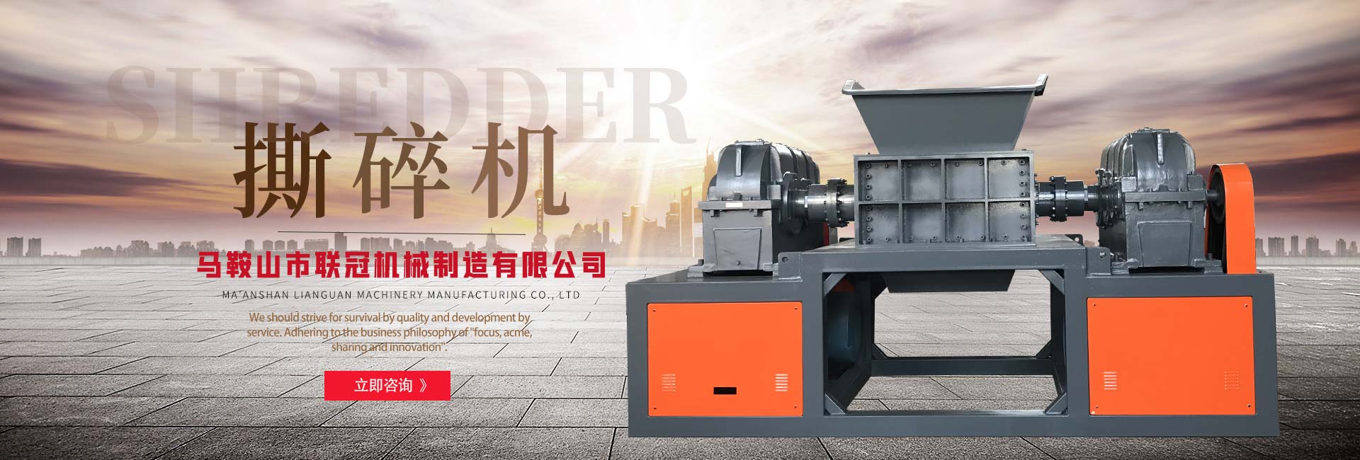 馬鞍山市聯(lián)冠機(jī)械制造有限公司致力于通過科技創(chuàng)新達(dá)到環(huán)境保護(hù),為地球“制造氧氣”的目的。長期以來,我們堅(jiān)守此宗旨,汲取先進(jìn)理念,致力于設(shè)計(jì)、研發(fā)、生產(chǎn)實(shí)用,的環(huán)保、廢舊物料再生設(shè)備。馬鞍山市聯(lián)冠機(jī)械制造有限公司主要產(chǎn)品包括:生活垃圾預(yù)處理系統(tǒng)、大件垃圾回收處理系統(tǒng)、金屬廢棄物(汽車摩托車外殼、壓塊、鐵屑)處理系統(tǒng)、廚余垃圾預(yù)處理系統(tǒng)、廢舊輪胎回收處理系統(tǒng)、廢舊電子電器回收處理系統(tǒng)、廢舊塑料回收處理系統(tǒng)等。馬鞍山市聯(lián)冠機(jī)械制造有限公司在確保產(chǎn)品品質(zhì)和完善的海外服務(wù)基礎(chǔ)上,公司經(jīng)過長期戰(zhàn)略布局,并且積極進(jìn)軍國外市場。面對(duì)經(jīng)濟(jì)快速發(fā)展提供的機(jī)遇,聯(lián)冠機(jī)械始終依靠提供更好的產(chǎn)品和完善的服務(wù)來追求客戶滿意,從而實(shí)現(xiàn)企業(yè)的價(jià)值!另一方面,我們堅(jiān)信科技推動(dòng)了人的觀念和機(jī)械的效率共同進(jìn)步。規(guī)避行業(yè)發(fā)展的劣勢、探求機(jī)械制造與人類文明結(jié)合是我們永遠(yuǎn)的動(dòng)力。馬鞍山市聯(lián)冠機(jī)械制造有限公司以質(zhì)量求生存、以服務(wù)求發(fā)...