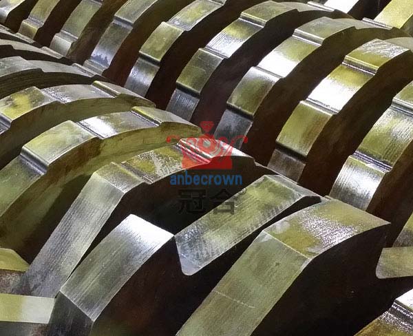 撕碎機刀片的修磨和別的刀具的修磨不太相同,別的類型的機械刀片基本上都是用磨床對平面或刃口有些進行修磨,而撕碎機刀具的構造的特殊性,多爪刃的設計讓磨床無法對其進行修磨,而單一的對刀片的平面修磨會形成刀片之間的空隙過大嚴重影響運用。